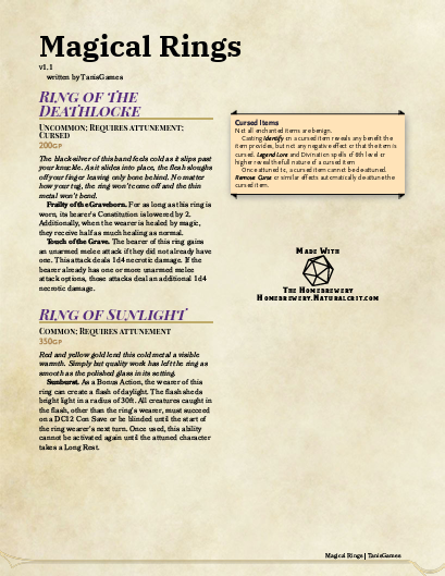 A small collection of magic items for D&D 5th edition 2014 or 2024.